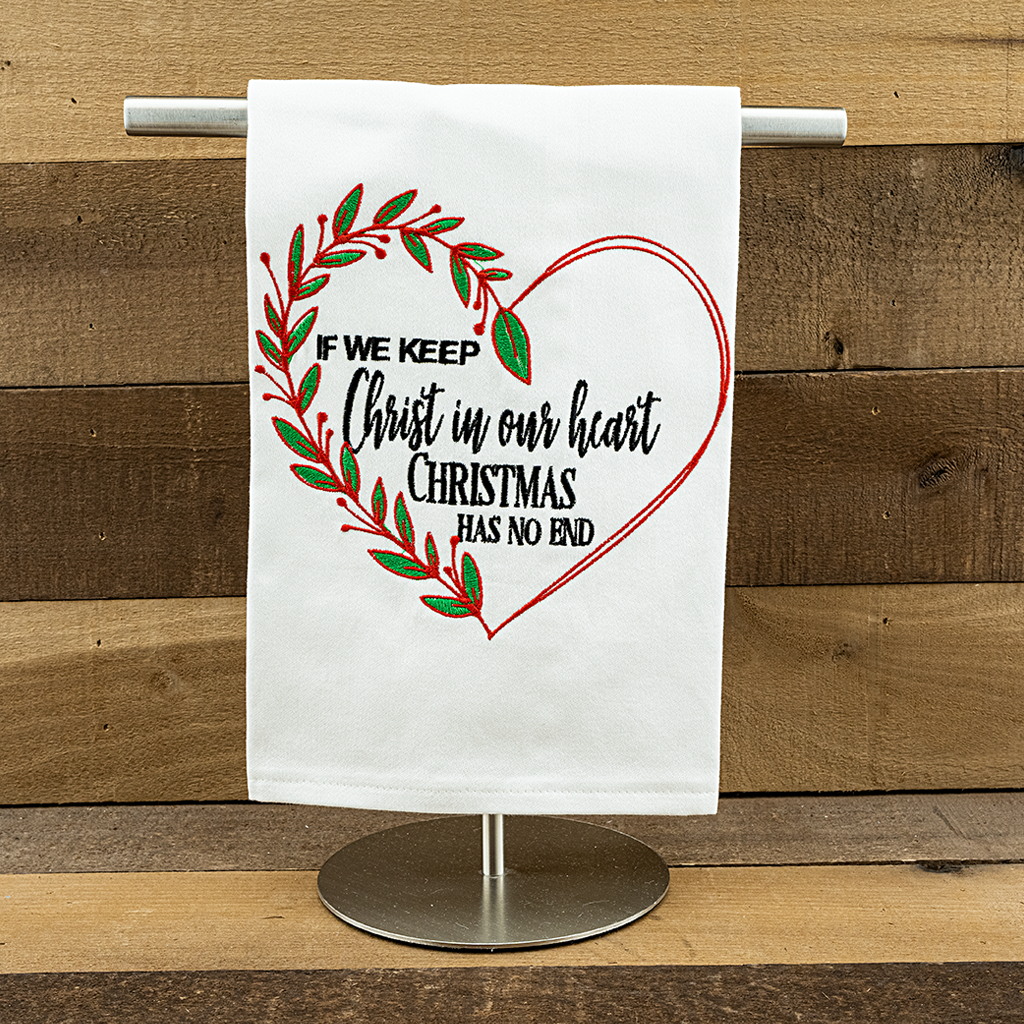Embroidered Kitchen Towel, Christmas Heart, Great Gift for Christmas, Thanksgiving, Seasonal, or Any Occasion